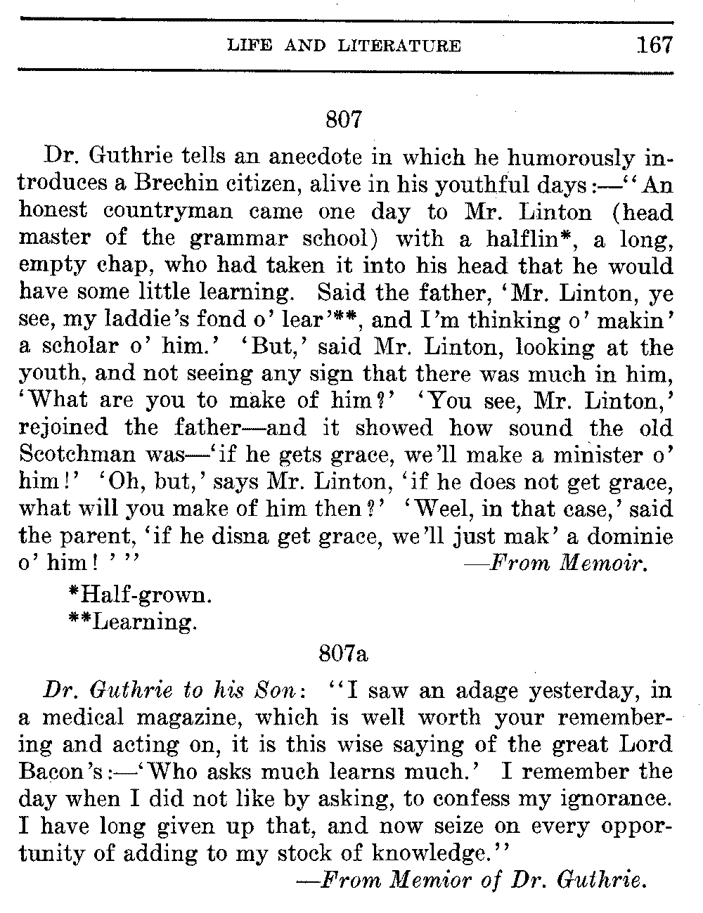 Page 167 (#807a): From Memoir[original has Memior] of Dr. Guthrie.