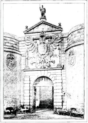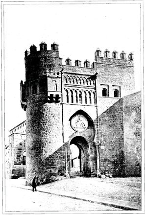 La porte de Visagra, construction massive remontant à l'époque de Charles Quint. (Photographie Lacoste, à Madrid.) 587