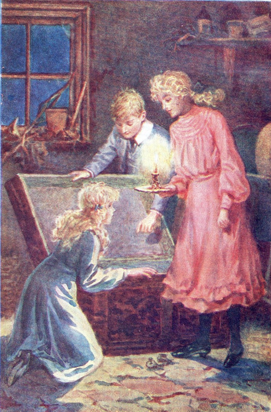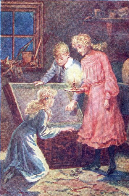 "I'll just creep down and show him I've found him out," she said to herself. "What fun to take him by surprise!"