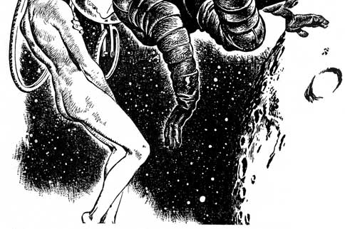 His own heritage, while covered with peculiar glory, was a more tragic one—the spacemen's heritage. The Broadshoulders were brave, but things happened to them. His grandfather, a traffic officer, had chased a comet for speeding, and had, unfortunately, overtaken it. His father had been spared the fire, but one day, aboard his spaceship, someone spilled a glass of water. The gravity was off at the time, and the water just hung there in mid-air until Brad's father walked into it and drowned.