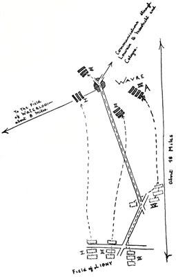 The second factor which gave Napoleon his chance was that this long line depended for its supply, its orders, its line of retreat upon two separate and opposite bases.