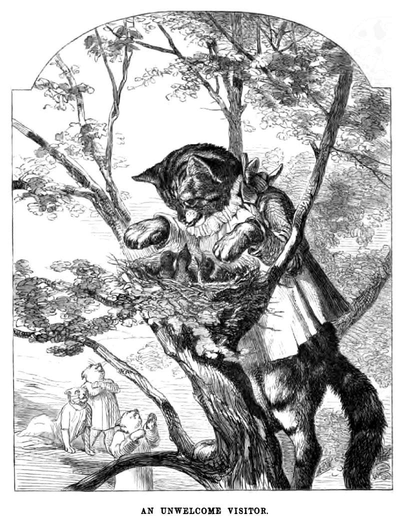 These rude creatures had taken a particular dislike to me: first, because I had reproved the young Pussies for their behaviour, as being very unbecoming their age and sex; and secondly, on account of my having forbidden them entering my grounds to chase the poor birds who lodged in the trees.