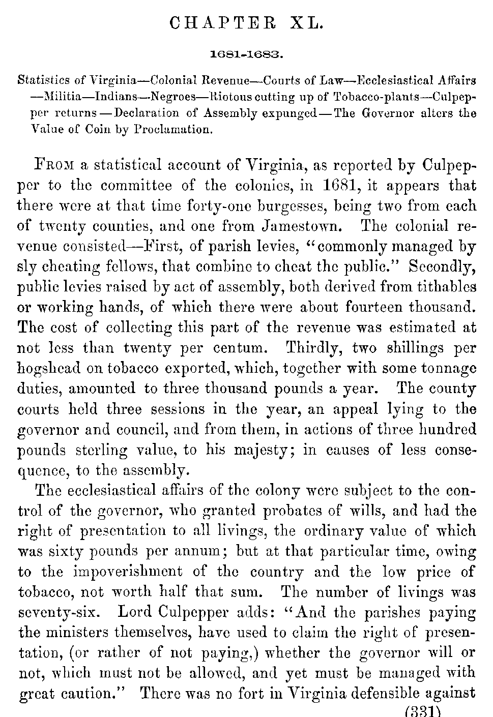 | XLI. | —Effingham, Governor. Death of Beverley. Effingham's Corruption and Tyranny. | 335 |