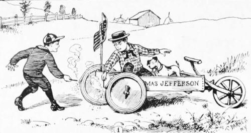 "That's just what Charles Carroll of Carrollton told him. But Jefferson insisted on calling in the janitor, and having it invented while they waited. 'Posterity can never read my handwriting,' said Jefferson. 'Besides, my fountain-pen won't work to-day; you know how it is with these fountain-pens—some days ink will shoot out of them like water out of a garden hose, and other times you can't get it out with a corkscrew.'"
