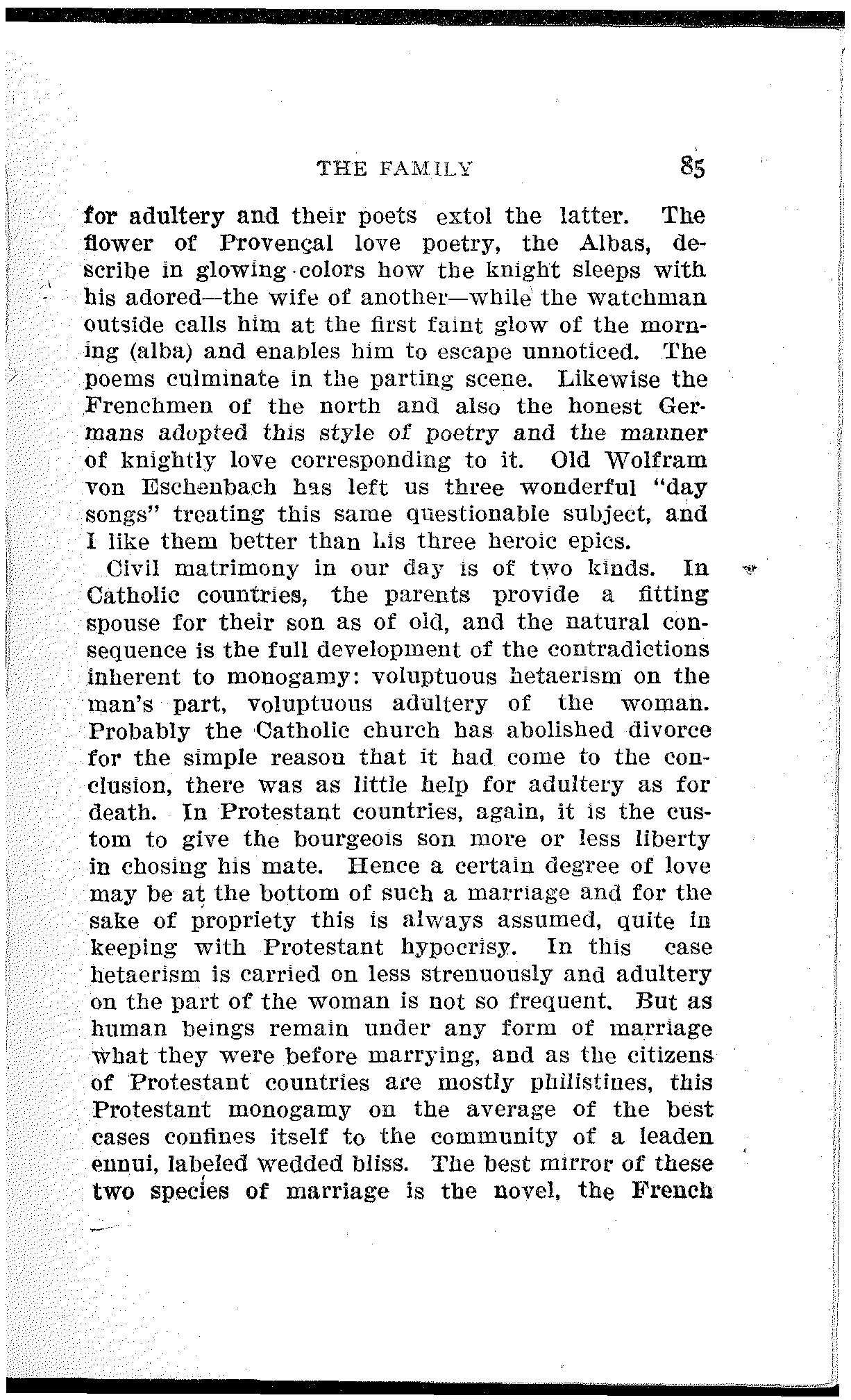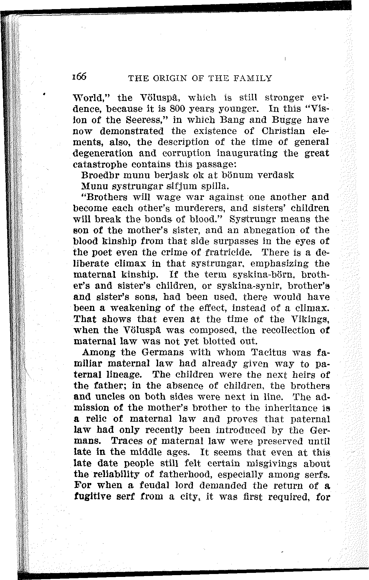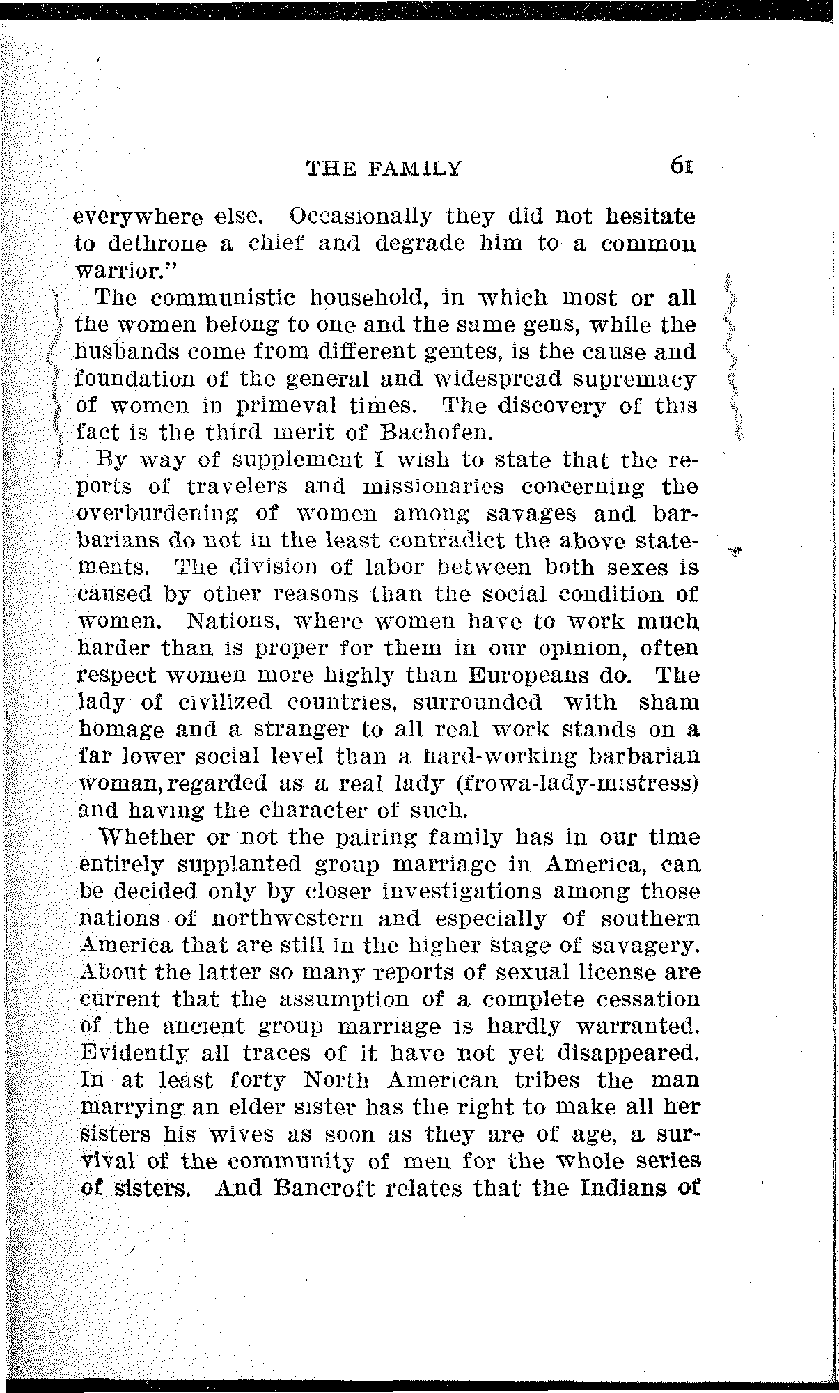Bachofen's big volume was written In German, i. e., in the language of a nation that cared less than any other of its time for the history of the present family. Therefore he remained unknown. The man next succeeding him in the same field made his appearance in 1865 without having ever heard of Bachofen.