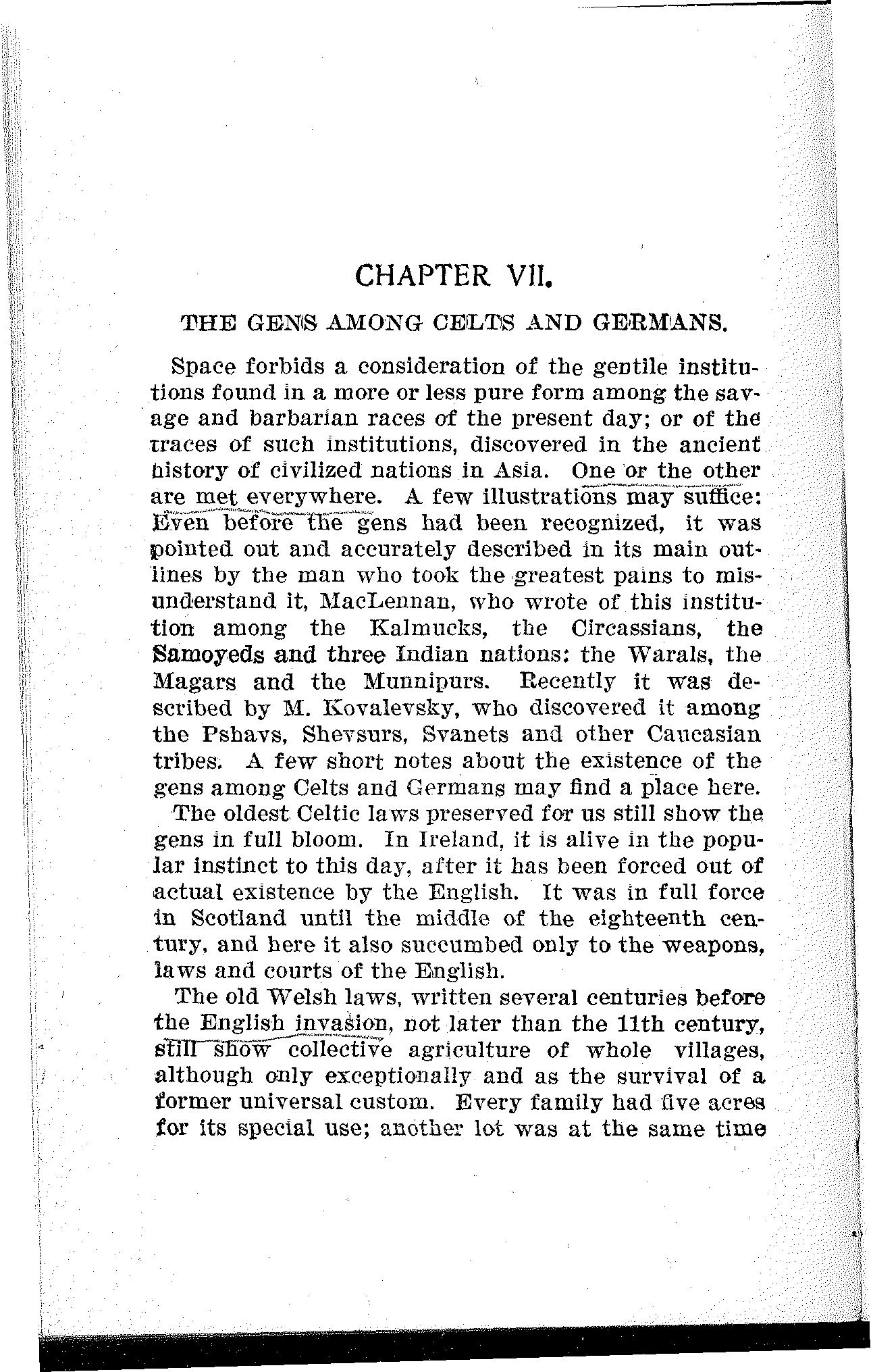 [1] Ancient Society or Researches in the Lines of Human Progress from Savagery, through Barbarism, to Civilization. By Lewis H. Morgan. Henry Holt & Co. 1877. The book, printed in America, was singularly difficult to obtain in London. The author died a few years ago.