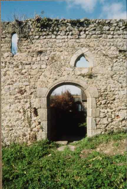 163. Saint-Léonard-de-Vains. The priory church. On this Photo by the 1980s, we still see the stairs leading to the first floor of the tower (they doesn't exist any more), as well as the rectangular openings of the tower and the choir, and the chimney above the choir. Photo by Marie Lebert. [Marie-19]