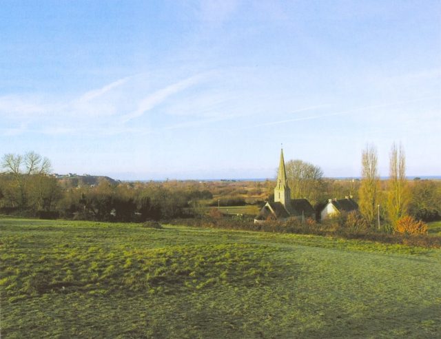 119. Dragey. The church is not situated in the village, unlike the other churches in the region. Visible from far out at sea, the tower was a landmark for seamen. Photo by Alain Dermigny. [Alain-063]
