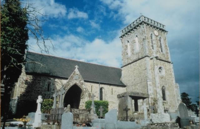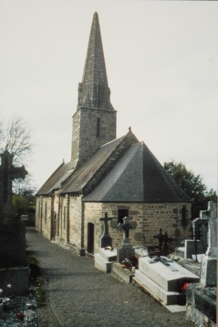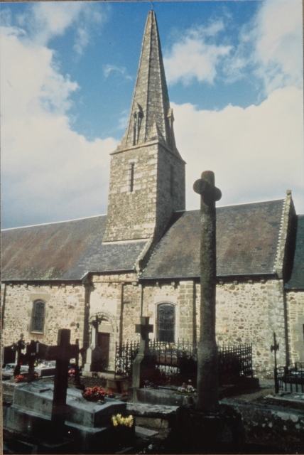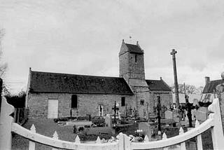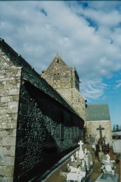 081. Angey. The church and its cemetery. The church is under St. Samson's patronage, and the second saint is St. John the Baptist. The parish of Angey belonged to the deanery of Genêts and the archidiachoné of Avranches. In 1162, the church of Angey and its dependencies were given to the Abbey of the Lucerne by William of St. Jean. The abbot of the Lucerne was the lord of the church from then on. Photo by Marie Lebert. [Marie-12]