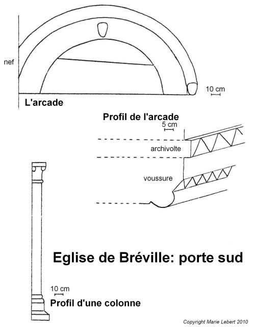 028. Bréville. Sketch of the Romanesque gate in the south base of the tower. Sketch by Marie Lebert.