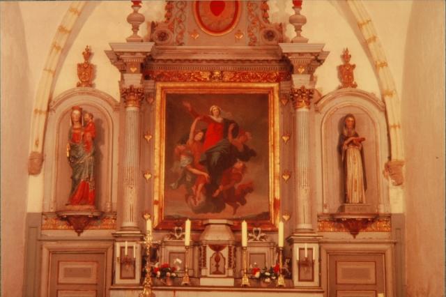 038. Bréville. A detail of the main altar, in the apse of the choir. A statue of Our Lady, the patron saint of the church. Photo by Alain Dermigny. [Alain-021]