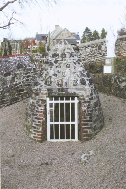 040. Bréville. The fountain Saint-Hélier. This fountain was topped by the statue of St. Helier that is now in the background, on the right. Photo by Claude Rayon. [Claude-10]