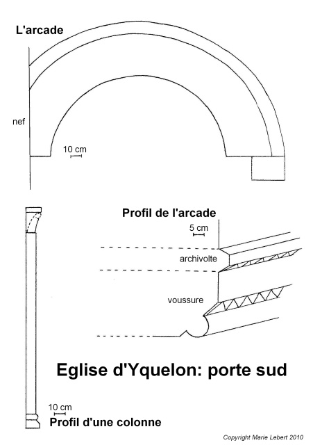 053. Yquelon. Sketch of the Romanesque south gate. This gate also has similarities with the south gate in the church of Bréville, located a few kilometers north-west. Sketch by Marie Lebert.
