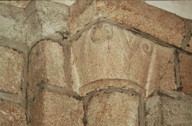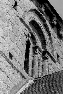 186. Saint-Loup. The Romanesque tower. On the lower floor, a small opus reticulatum (diamond-shaped blocks) is present at the corner between the twin arches. Photo by Alain Dermigny. [Alain-101]