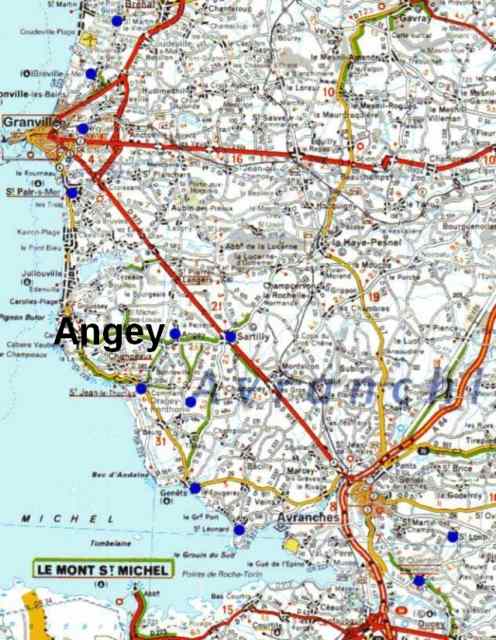 080. Angey. Location. The village of Angey is located 2,5 kilometers west of the village of Sartilly. The parish of Angey has been part of the parish of Sartilly since 1914. The church of Angey is used only very occasionally for weddings and funerals.