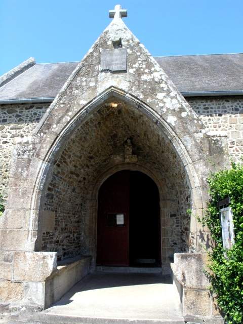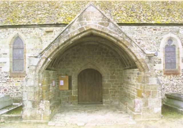 152. Genêts. The porch. This large porch, from the 16th century, stands before the south gate of the nave, which is from the 13th century. The porch has offered pilgrims and parishioners two stone benches and a shelter from rain and western winds coming from the sea. Photo by Claude Rayon. [Claude-44]