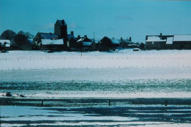 156. Saint-Léonard-de-Vains. Winter panorama. The village and its priory church under the snow, at the end of the winter. Photo by Alain Dermigny. [Alain-084]
