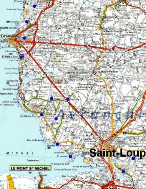 174. Saint-Loup. Location. Saint-Loup (also called Saint-Loup-sous-Avranches) is located south-east of Avranches, only 6 kilometers from the town, in a hilly region close to the granite ground of Avranches, making granite stones easily accessible.