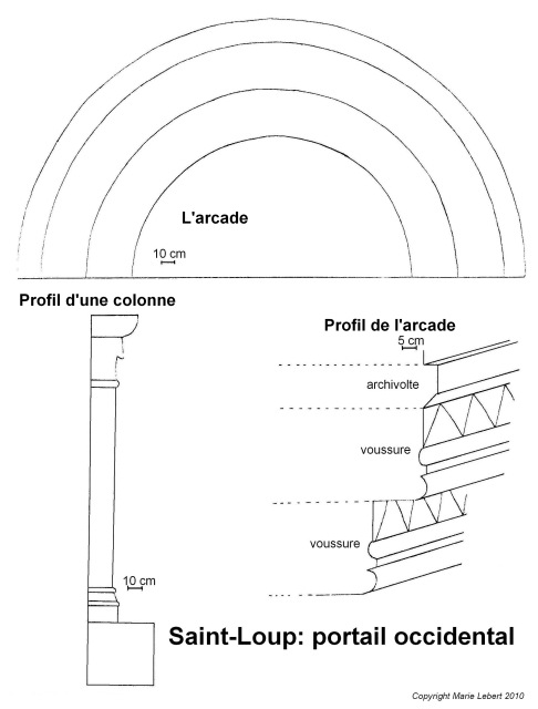 179. Saint-Loup. Sketch of the Romanesque west gate. Sketch by Marie Lebert.