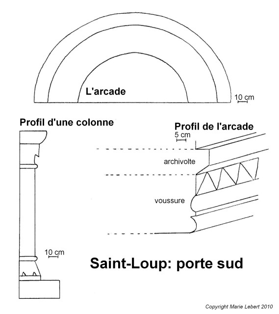 191. Saint-Loup. Sketch of the Romanesque south gate, in the first row of the choir. Sketch by Marie Lebert.