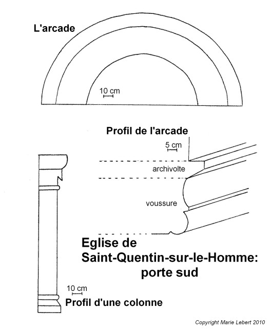 201. Saint-Quentin-sur-le-Homme. Sketch of the south gate, that is walled-up at the base of the tower. Sketch by Marie Lebert.