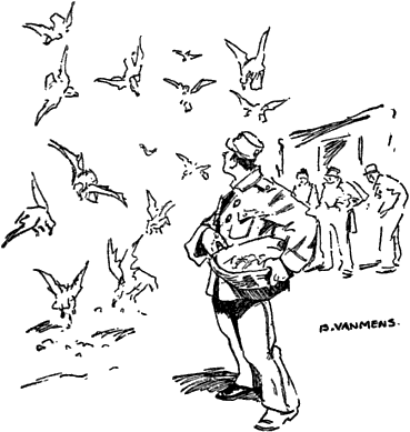 Hij mag vertellen, hoe duur de sigaren zijn, die de kaptein rookt of weggeeft, en ook hoeveel stukken vleesch de kok wederrechtelijk mee naar huis genomen heeft.