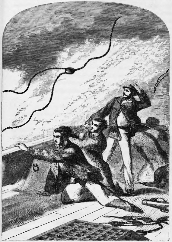 “Never mind that!” exclaimed Hearty. “Tell me, my men, where are the ladies? what has become of them? Help us to find them, and all will be overlooked. They could not have been left to perish on board the burning vessel.”