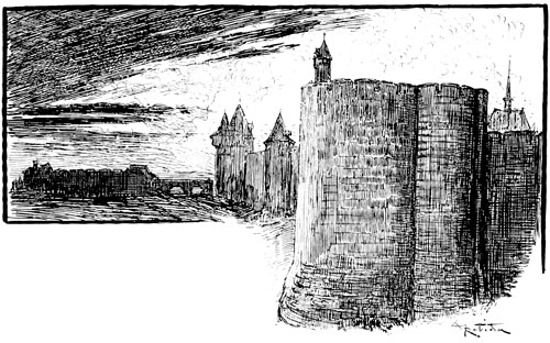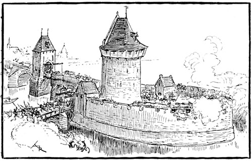 Les défenses étaient encore bonnes, malgré les dégâts des sièges précédents; Compiègne, depuis moins de douze ans seulement, avait été pris et repris cinq ou six fois, par les Bourguignons, par les troupes royales, ou par les Anglais qui l'avaient conservé de 1423 à 1429, mais grâce aux réparations et renforcements on avait une enceinte de murs solides, des tours nombreuses suffisamment rapprochées l'une de l'autre, avec quatre portes et deux poternes.
