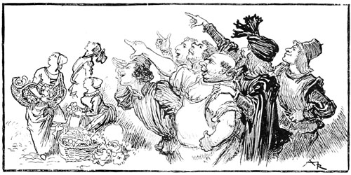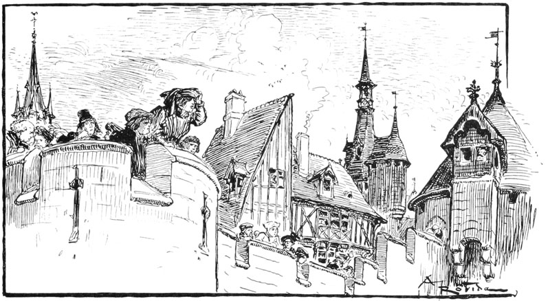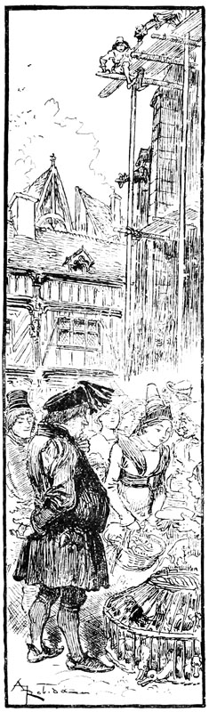 Il en fut bientôt ainsi sur tout le marché; paysans et chalands s'interrompirent dans leurs négociations sur le beurre et les œufs, les légumes ou les volailles, et à leur exemple, dans les rues débouchant au parvis, du Change, de Saint-Antoine ou du pont, les commères regardèrent en l'air sur le pas des portes, les ouvriers se mirent aux fenêtres.