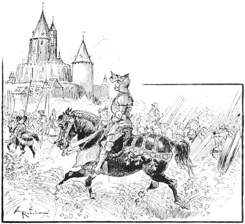 Ceci se passait en la bonne ville de Compiègne, serrée entre ses murailles le long de la rivière d'Oise, à l'entrée de la forêt, sur les confins du Valois et de la Picardie. On était au plus fort de la guerre avec l'Anglais, en l'an 1429, année fameuse qui avait vu surgir des marches de Lorraine la bergère de Vaucouleurs, et la victoire revenir avec elle sous les bannières de France si longtemps poursuivies par le malheur. Après cette merveilleuse délivrance d'Orléans assiégé, il y avait eu la campagne rapide et vigoureuse de Jehanne d'Arc; l'un après l'autre les chefs les plus renommés des bandes anglaises étaient battus, chassés ou pris, l'une après l'autre les villes retombaient au pouvoir du dauphin Charles;—chevauchée héroïque d'une petite armée qui, abattant ou renversant tout devant elle, venait de pousser jusqu'à Reims pour y faire sacrer le roi dans la vieille cathédrale.