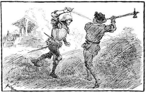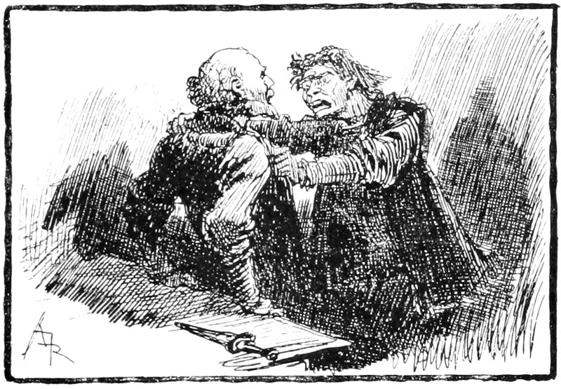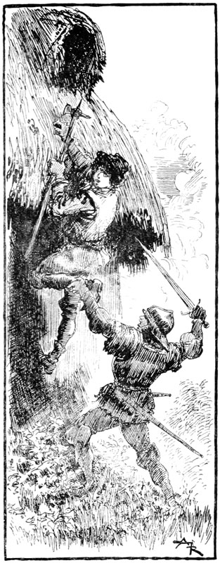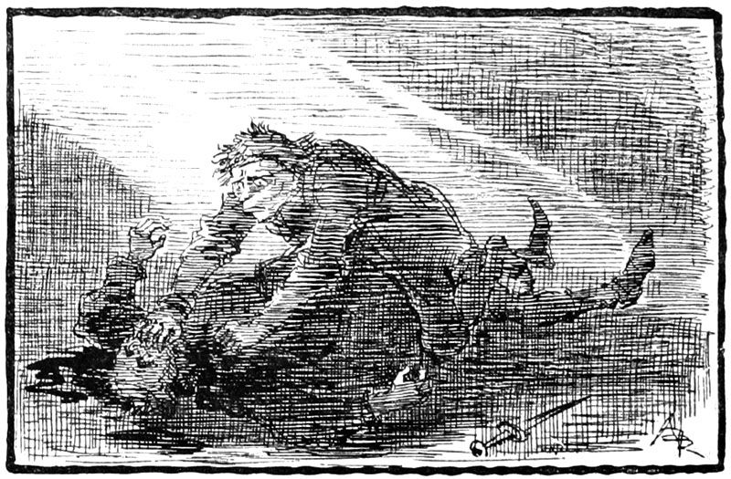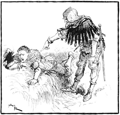 Et, traînant la corde toujours attachée à son cou, bousculant bourgeois et soldats, Jehan sauta à la gorge de Rongemaille terrifié.