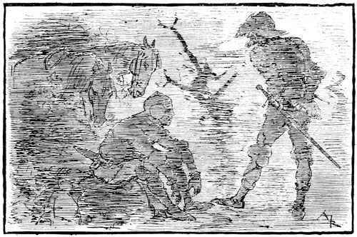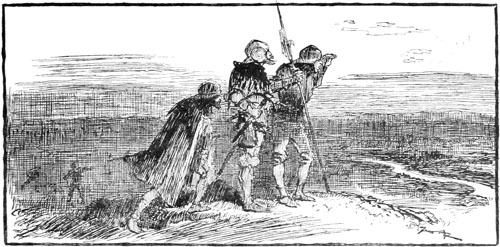—Alerte! s'écria Longbec en se retournant, voilà le gouverneur avec une troupe qui arrive! Glissez-vous là, maître Rongemaille, et filons! Alerte, Canteleu, ayons l'air joyeux! Mais, barbe du diable! que je voudrais donc encore être avec les camarades, en forêt comme hier! Oui, la poursuite de ce maudit messager peut nous coûter cher... Entrer dans Compiègne, nous donner pour de bons garçons de soudards français échappés aux pattes des Anglais, c'était trop risquer! Vois-tu, Canteleu, mon idée valait mieux, lâcher la bande du capitaine, attirer l'homme de Compiègne, ce Rongemaille maudit dans un bon buisson désert et le mettre à rançon... Assez de fatigues et de dangers! Avec ma part de ses écus, je quittais l'épée, je me refaisais tailleur...