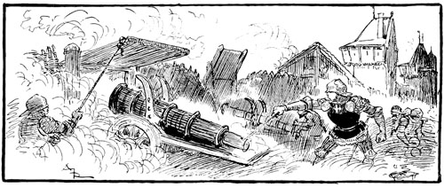 Au même instant, une détonation retentit. C'était une bombarde anglaise, de l'autre côté de l'Oise, qui tirait sur la ville. Quelque chose passa dans l'air avec un sifflement strident, il y eut un fracas de pierres tombant sur le pavé, au milieu des cris d'épouvante de la foule.