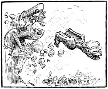 —Oui... Et bien, vous avez donc tous la vue brouillée? Cette vilaine bête qui ouvre si grandement une gueule édentée et qui serre une bourse dans ses griffes... une bourse volée... c'est tout à fait la ressemblance de...