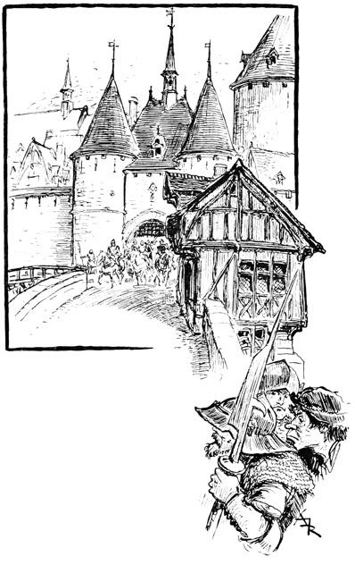 —Vous! Gauthier Longbec. Vous, Canteleu! C'est vrai, je vous oubliais depuis hier... Vous êtes de garde au pont... Vous m'avez fait une belle peur! fit-il à voix basse. Mais vite, cachez-moi!