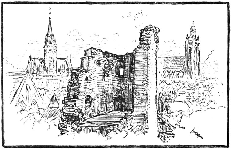 La petite troupe, hommes d'armes et piétons, se reposait de sa marche de nuit; les chevaux dans les écuries des hôtelleries, aux approches du pont, recevaient bonne provende; les hommes, dans un vaste enclos, débris de l'ancien palais de Charles le Chauve, au-dessous de la vieille tour Beauregard, étaient fêtés joyeusement par les Compiégnois; ils arrosaient du vin guilleret des coteaux de l'Oise, cru dédaigné aujourd'hui, un repas suffisamment plantureux pour un festin d'assiégés, et se préparaient pour le combat prochain.
