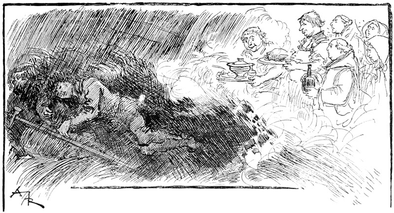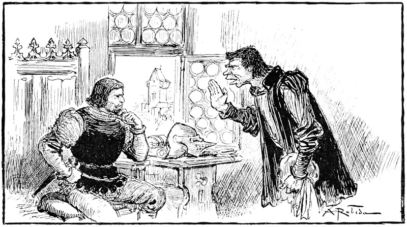 —Fi! tu te plains, Rongemaille, criait Jehan, au lieu de remercier ces braves gens qui te fournissent de quoi mettre la marmite au feu sans bourse délier... Tiens, reçois encore ces choses pour ton souper, mon ami!