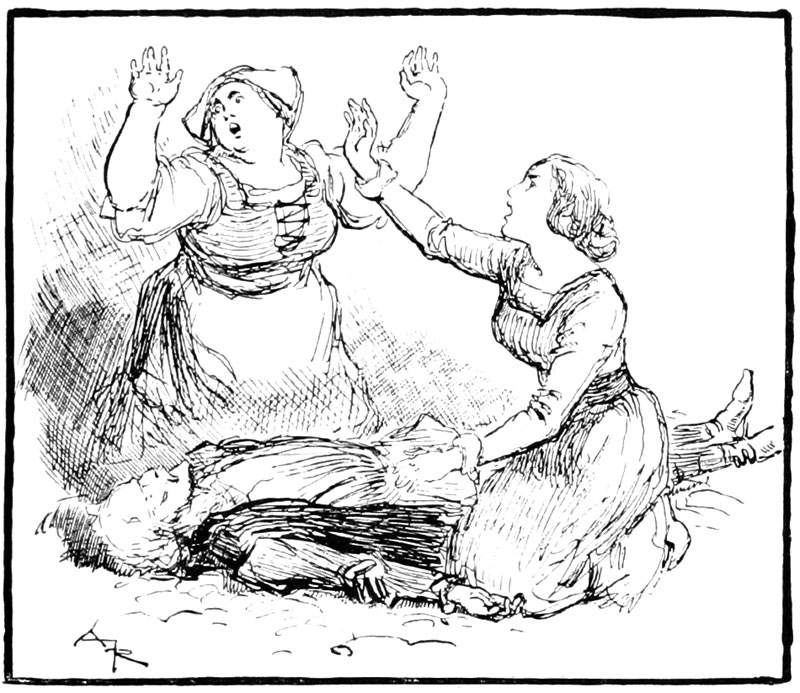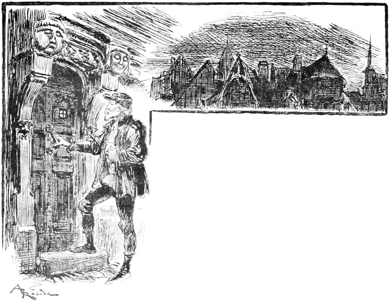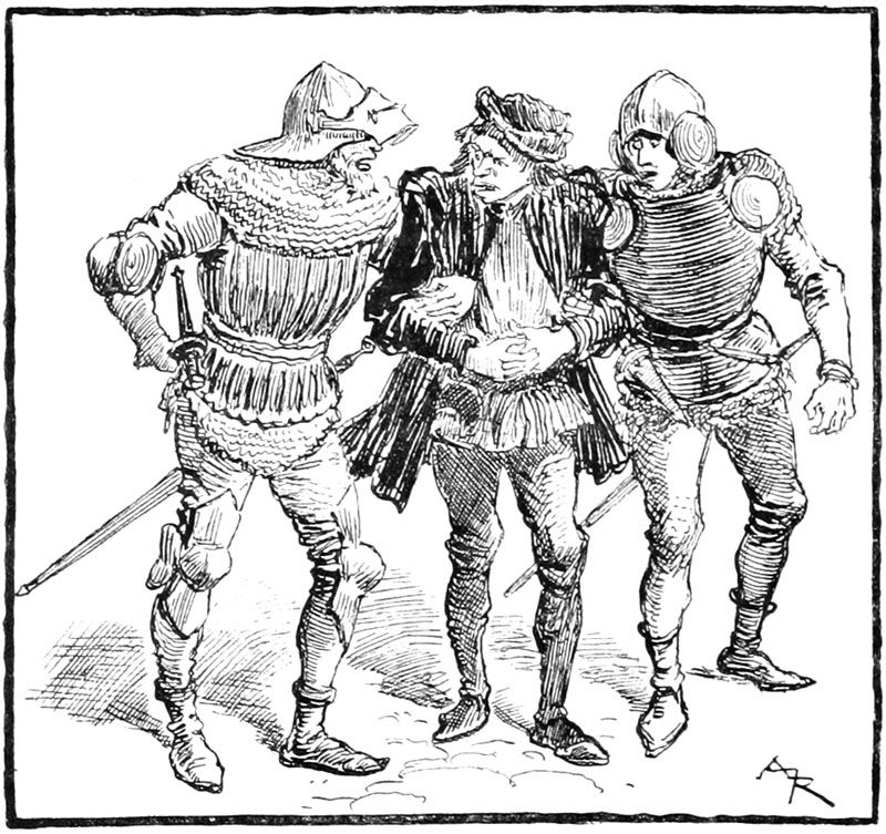 Rongemaille et Jehan avaient roulé à terre, hagards tous les deux, Rongemaille de terreur, Jehan hors de lui par la fureur et par la douleur que lui causait son épaule. De plus la corde qu'on lui avait passée au cou le serrait toujours, il se trouvait à demi étranglé, et Rongemaille cherchait à lui enfoncer sa dague dans la poitrine, la dague qui avait tué Bonvarlet. Enfin, d'un effort violent, Rongemaille se dégagea et bondit en arrière, renversant quelques bourgeois. Sa porte derrière lui était ouverte, il se jeta dans sa maison et on l'entendit tout de suite qui barricadait l'huis aux montants solides.