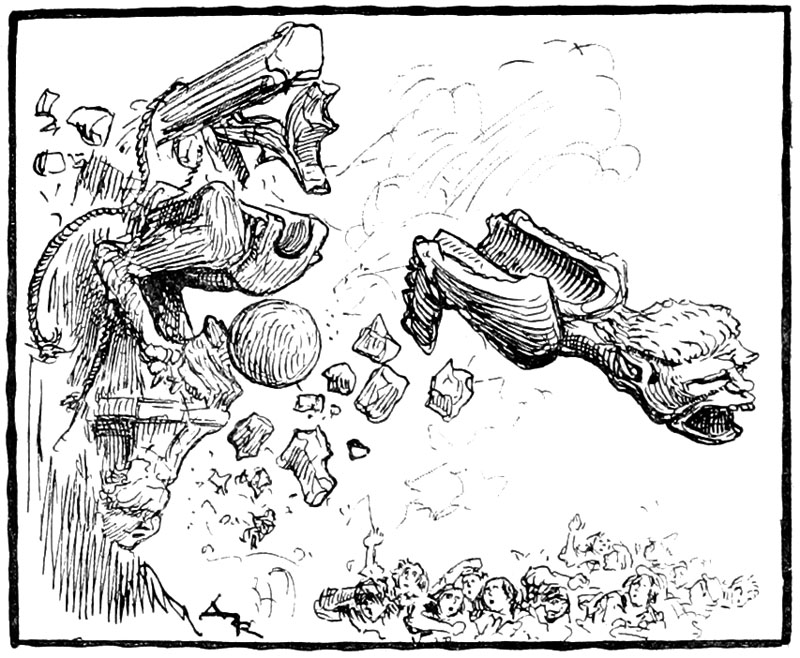 Le boulet venait de fracasser une gargouille de Saint-Corneille, juste celle dont la tête était à la ressemblance de l'usurier Rongemaille, et avec elle la balustrade où l'on avait passé la corde pour pendre Jehan des Torgnoles.
