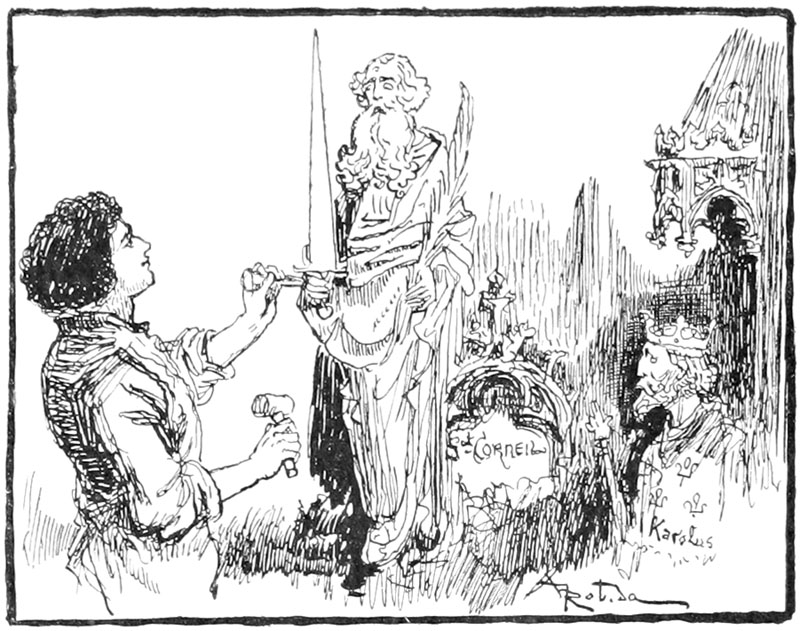 Redevenu de soldat ymagier, passé homme grave, il reprit avec ardeur le ciseau et le marteau pour se remettre aux sculptures de Saint-Corneille et mener à bonne fin les statues du portail laissées inachevées par son infortuné maître Bonvarlet.