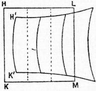 His portable electrometer is shown in fig. 2. H H (see fig. 3) is a plane disk of metal called the guard plate, fixed to the inner coating of a small Leyden jar (see fig. 2). At F a square hole is cut out of H H, and into this fits loosely without touching, like a trap door, a square piece of aluminium foil having a projecting tail, which carries at its end a stirrup L, crossed by a fine hair (see fig. 3). The square piece of aluminium is pivoted round a horizontal stretched wire. If then another horizontal disk G is placed over the disk H H and a difference of potential made between G and H H, the movable aluminium trap door F will be attracted by the fixed plate G. Matters are so arranged by giving a torsion to the wire carrying the aluminium disk F that for a certain potential difference between the plates H and G, the movable part F comes into a definite sighted position, which is observed by means of a small lens. The plate G (see fig. 2) is moved up and down, parallel to itself, by means of a screw. In using the instrument the conductor, whose potential is to be tested, is connected to the plate G. Let this potential be denoted by V, and let v be the potential of the guard plate and the aluminium flap. This last potential is maintained constant by guard plate and flap being part of the interior coating of a charged Leyden jar. Since the distribution of electricity may be considered to be constant over the surface S of the attracted disk, the mechanical force f on it is given by the expression,2