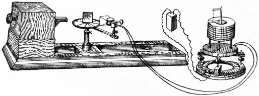 1 In the Annals of Philosophy for November 1821 is a long article entitled “Electromagnetism” by Oersted, in which he gives a detailed account of his discovery. He had his thoughts turned to it as far back as 1813, but not until the 20th of July 1820 had he actually made his discovery. He seems to have been arranging a compass needle to observe any deflections during a storm, and placed near it a platinum wire through which a galvanic current was passed.