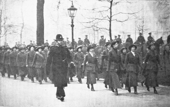 From the moment the war began, British women played a noble part. Not only did thousands of them qualify as nurses, and offer their services in the hospitals at home and abroad, but many of them became munition workers, ticket collectors, tram conductors, motor-car drivers, farm servants, and letter carriers. In every town and village there were work parties busily engaged in making socks, mufflers, mittens, etc., for the men in the trenches or for the wounded in the hospitals. The neglected art of knitting wonderfully revived, and women were seen plying the needles everywhere, in trams and trains, or at lectures and concerts. When the Germans first used poison gas against our troops, and the War Office asked for half a million respirators, wagon-loads of them arrived the next day. Girls' schools, women's societies, groups of friends and families buckled to, and in a remarkably short time the War Office was able to announce that no more respirators were needed.[12]
