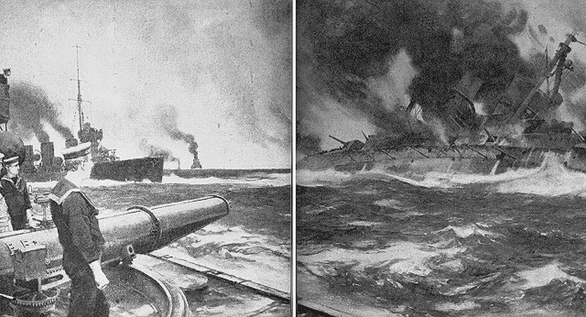 About noon a British destroyer, the Meteor, torpedoed the Bluecher, and she began to sink. Here is an officer's description of the final scene:—