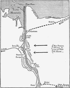 Two days after the Battle of the Dogger Bank we learned that a Turkish force was advancing upon Egypt. Why were the Turks about to invade the "Land of the Nile"? First of all, because they believed that the fellahin[5] of Egypt were ready to revolt and join hands with them against the British. The Egyptians are Mohammedans, and are therefore linked with the Turks by the bond of a common religion. For three hundred years Egypt was part of the Turkish Empire.