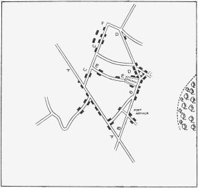 [49] Quinn's Post lay at the head of Shrapnel Valley, the Valley of Death referred to on page 273. Pope's Hill lay to the left front of Quinn's Post, and Courtney's Post was on the right of Quinn's Post.