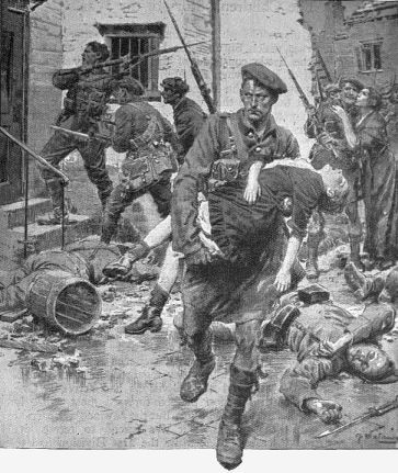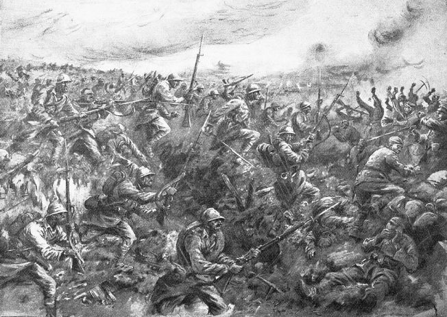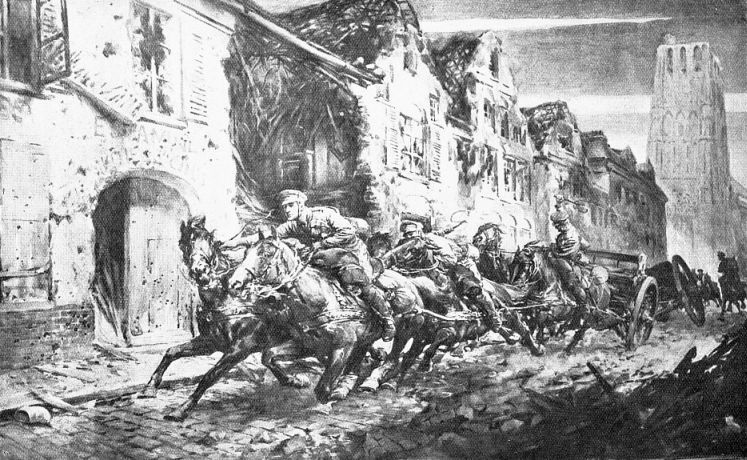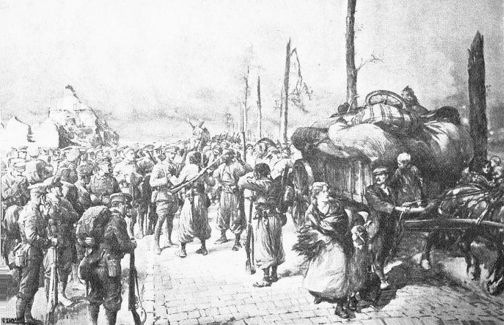 Now let us return to the Danube and briefly follow the stages of Serbia's agony. By means of the great river, which is linked with the canals of the Elbe and the Rhine, barges full of big guns and supplies had been conveyed to the scene of action. On 19th September, before the big guns arrived, Austrian batteries opened fire on Belgrade; but the Serbians and the British sailors who were fighting with them prevented a crossing. On 3rd October the enemy's big guns were placed in position, and the Serbian trenches were pounded to dust. It was the Donajetz bombardment all over again. Belgrade could no longer be held, and by the 8th of October the Austrians and Germans had crossed the Danube and the Save at six places between Shabatz and Belgrade. There was a desperate struggle in the streets of the capital, but on the morning of the 9th the place was in the enemy's hands. The lesson of Warsaw had been learned, and all that was valuable in the city had been carried off.