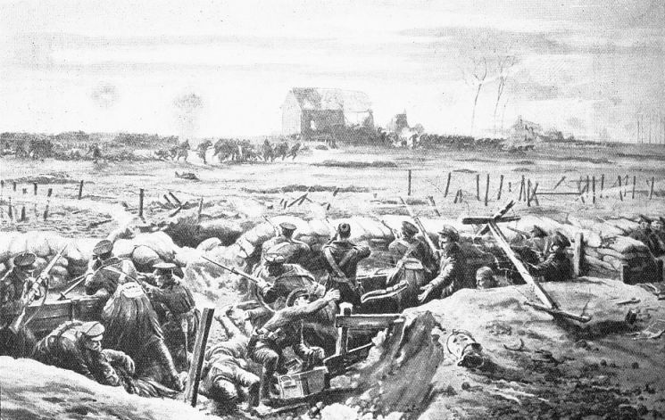 Unhappily, even in this time of great national danger, there were labour troubles. Masters and men quarrelled about rates of wages and hours of work, while their sons and brothers were dying at the front for lack of shells with which to keep down the fierce bombardment of the enemy. Not until laws were passed preventing masters from making undue profits out of the nation's needs, and punishing workmen who kept bad time, was the strife allayed. The Trade Unions were persuaded to relax their rules, and gradually most of the difficulties were removed. Slowly but steadily the supply of arms and ammunition increased, until in the latter part of the year the shortage was overtaken, and it was possible to meet the enemy on more than equal terms. A well-known public man who visited the trenches in November was able to say, "For every shell which the Germans throw to-day, we are throwing five." "Mr. Lloyd-George's compliments," said a British gunner to the shell, as he closed the breech of his gun, "and there's plenty more where that came from."
