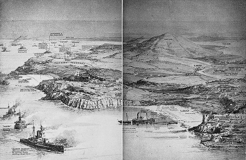 [18] The narrowest part of the Dardanelles, 14 miles from the Mediterranean. The width of the strait at the Narrows is about three-quarters of a mile.