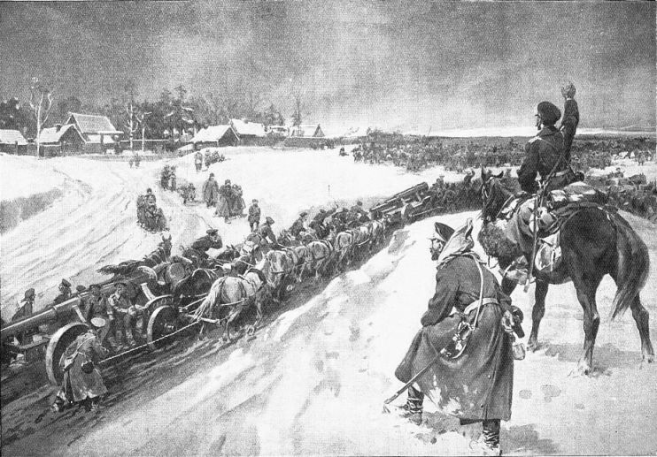 The Russians strove manfully to increase their supply of munitions, and Great Britain and Japan gave them much help. By November they had increased their supplies to such an extent that they were able not only to resist the enemy, but to attack him. Some idea of the spirit shown by t[6]he Russian munition workers may be obtained from the following message which was found written on an ammunition box: "Do not spare the shells; there are plenty more coming, comrades. We are working hard to keep you supplied. Cheer up!"